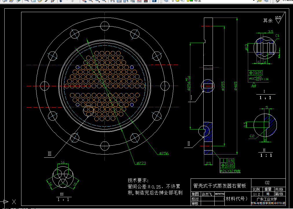 最终完成了一个材料节省,满足要求,结构合理的壳管式干式蒸发器。