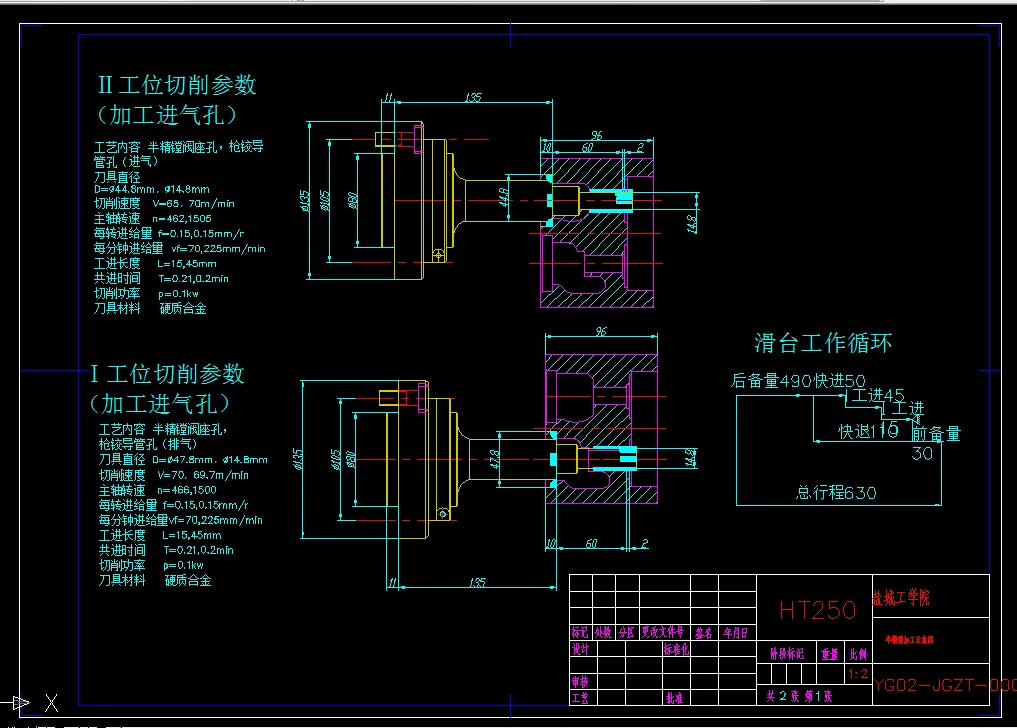 摘 要:为了提高生产效率,满足被加工零件的精度要求,需要设计一台组合机床来改善它的加工情况。本课题设计的是半精镗精镗气缸盖导管孔组合机床。其来源于江苏高精机电装备有限公司。在设计中,通过研究被加工零件的特点,对相关数据进行计算,对相关部件进行选择,从而确定机床的总体布局。并绘制出被加工零件工序图,加工示意图,机床联系尺寸图和生产率计算卡。在此基础上拟定了夹具的结构方案,确定工件的定位方式,然后进行误差分析,确定夹紧方式,对夹紧力进行计算,对夹具的主要零件进行结构设计,并绘制出夹具图和主要零件图。该机床对零件加工和装配的工艺性好,工件装夹方便。采用液压滑台实现刀具进给,工件采用一面两孔定位,一次装夹完成,不仅保证了孔的加工精度,而且还提高了加工效率,降低了工人的劳动强度。
