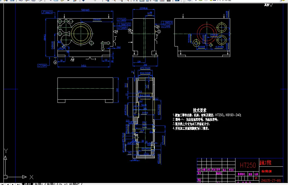 摘 要:柴油机机体为大批量生产的零件,为了提高其生产效率,满足被加工零件的精度要求,保证加工性能稳定,本课题设计了一台用于ZH1135柴油机机体三面半精镗的组合机床。设计内容主要分为总体设计和左主轴箱设计两部分。总体设计包括机床配置型式的确定、结构方案的选择以及“三图一卡”的绘制。左主轴箱设计包括绘制多轴箱设计原始依据图、确定主轴和齿轮;完成动力计算、设计传动系统;绘制多轴箱装配图和零件补充加工图。机床采用卧式三面加工的方案,加工和装配的工艺性好,零件装夹方便。主轴箱选用的是通用主轴箱。设计过程中尽量采用了标准零部件,设计出的组合机床结构简单,操作方便,加工精度高,减轻了劳动强度,提高了加工效率,具有较好的经济性和适用性。