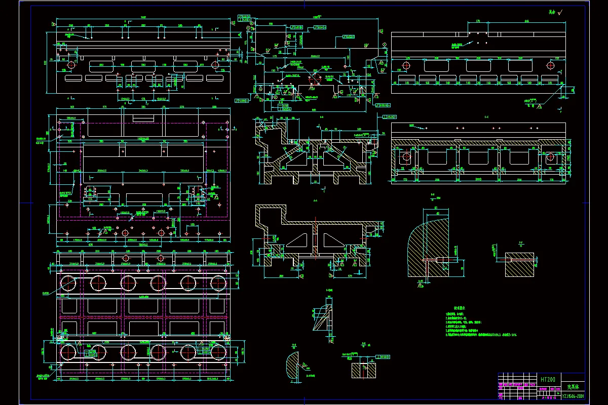 本课题设计的是气缸体双工位专用钻床,用于钻削被加工零件左侧面上的12个30深110mm的挺柱孔,右侧扩12个41的孔、锪挺柱孔41端面,并钻削12个8和7个6的水孔。本机床设计主要包括总体设计和夹具设计两个部分。采用卧式双工位双面加工方案,左侧主轴箱用来加工这12个挺柱孔,右侧主轴箱用来完成剩下的31个孔的加工,两主轴箱的中间是夹具部分。机床采用液压滑台实现刀具的进给,以保证进给速度的稳定可靠。由于工件左侧12个30 mm的挺柱孔之间孔距较小,使得左主轴箱中主轴的排布受到了限制,为此采用双工位分两批加工。工件选用“一面两孔”的定位方案,采用液压夹紧方式。为保证工件上被加工孔的位置精度,采用了导向装置。因工件批量较大,导向装置中的钻套容易磨损,所以采用了可换钻套。夹具体材料采用HT200,并在夹具体上开设排屑槽以防止切屑在定位元件工作表面上或其他装置中堆积而影响工件的正确定位和夹具的正常工作。