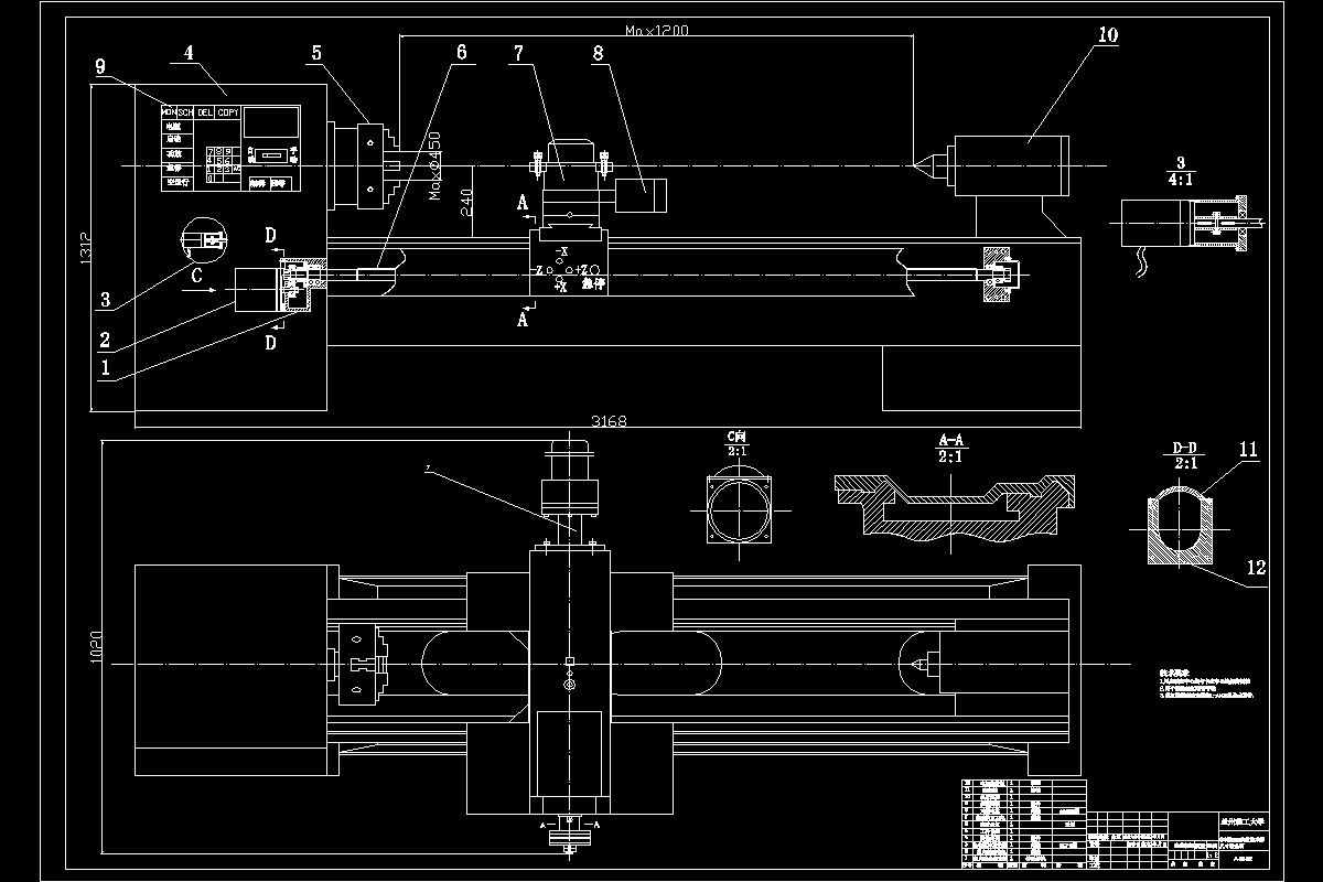 φ460mm的数控车床总体设计及纵向进给设计 本次设计是对Φ460MM数控车床的设计。在这里主要包括:主传动系统的设计、纵向进给系统的设计、横向进给系统的设计。而我主要是针对纵向进给系统进行机械设计。这次对设计工作的基本技能的训练,提高了分析和解决工程技术问题的能力,并为进行一般机械的设计创造了一定条件。 数控设计主要传动系统的机械设计。由于对经济型数控机床的加工精度要求不高,为简化结构、降低成本。通过控制横进给系统,保证设计后的车床具有定位、直线插补、圆弧插补、暂停等功能。为实现机床所要求的传动效率,采用步进电机经联轴器再传动丝杠;为保证一定的传动精度和平稳性,尽量减小摩擦力,选用滚珠丝杠螺母副。