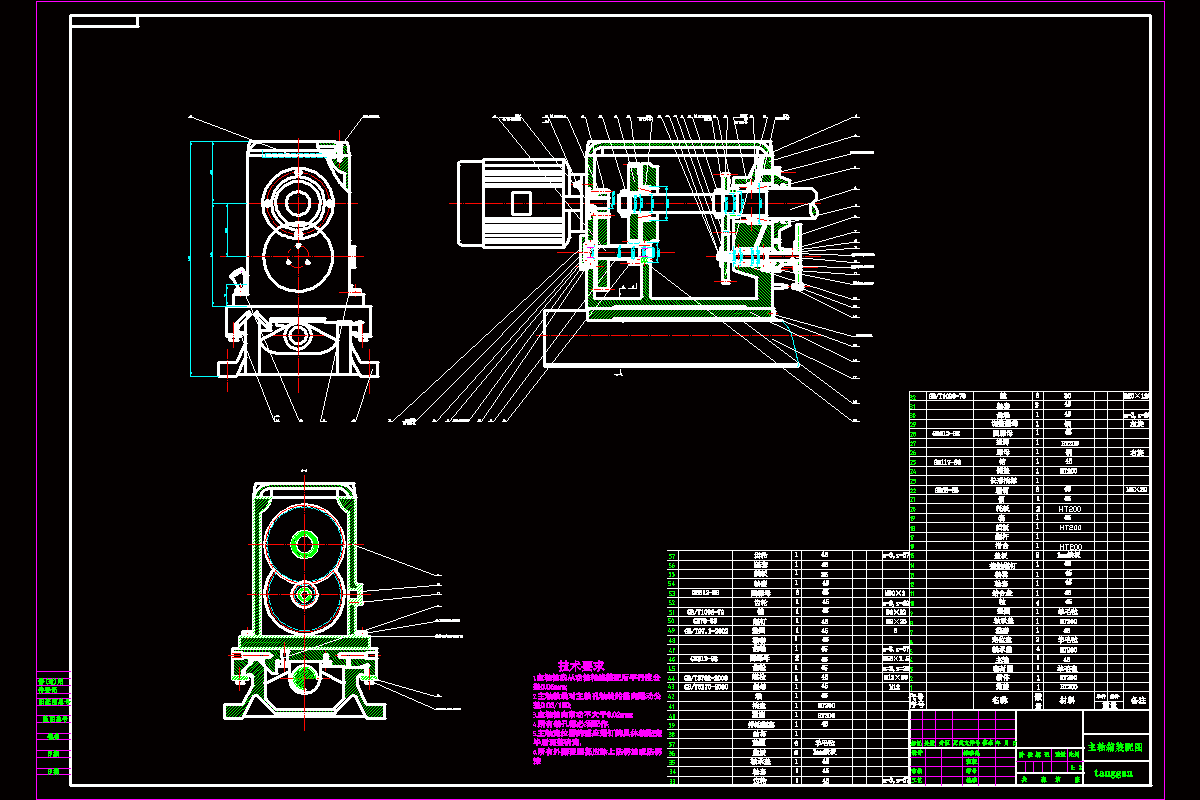 (3)、组合机床部件设计包括专用多轴箱的设计,传动布局合理,轴与齿轮之间不发生干涉,保证传动的平稳性和精确性。专用主轴设计、轴承的选用及电机的选择等。