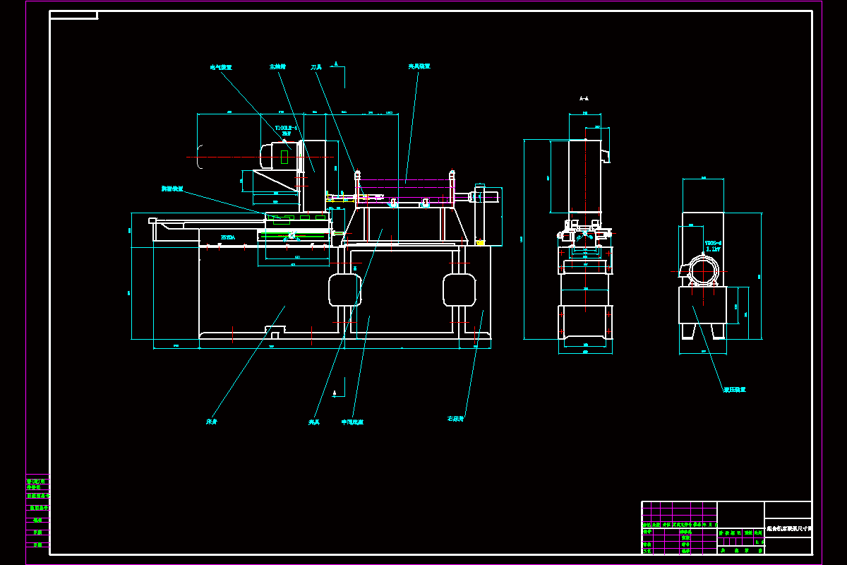(2)、组合机床的总体设计确定机床各部件之间的相互关系,选择通用部件和刀具的导向,计算切削用量及机床生产效率、绘制机床的尺寸联系图及加工示意图。
