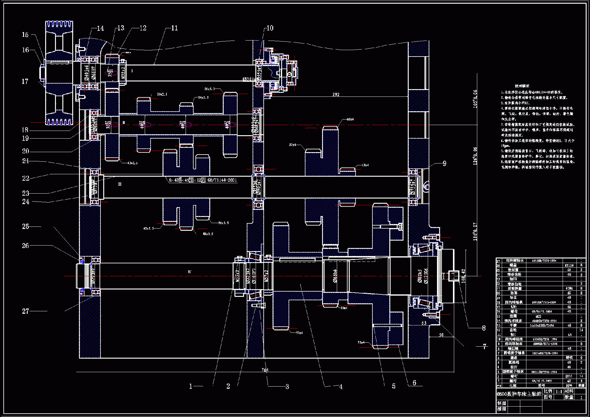 Φ500mm的数控车床总体设计及主轴箱设计 全面阐述了数控车床的结构原理,设计特点,论述了采用伺服电机和滚珠丝杠螺母副的优点。详细介绍了数控车床的结构设计及校核,并进行了分析。另外汇总了有关技术参数。 本说明书首先介绍了我国数控机床发展的过程与现状 ,并分析了其存在的问题 ;对数控机床的发展趋势进行了探讨;并对数控车床主轴箱传动系统进行了设计与计算。 目前,数控车床的发展趋势是通过电气与机械装置进行无级变速。变频电机通过带传动和变速齿轮为主轴提供动力。通常变频电机调速范围3—5,难以满足主轴变速要求;串联变速齿轮则扩大了齿轮的变速范围 。