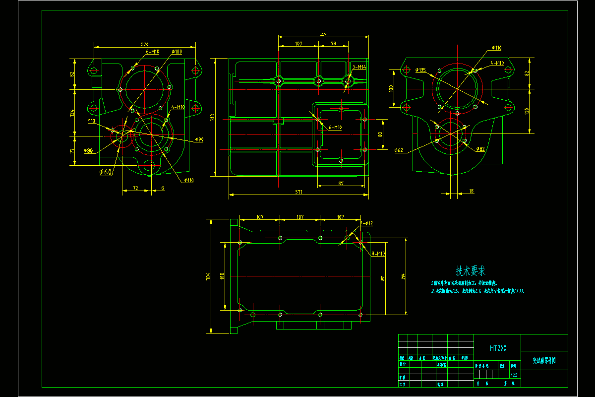 本说明书主要说明组合机床设计的基本过程及要求。组合机床是按高度集中原则设计的,即在一台机床上可以同时完成同一种工序或多种不同工序的加工。组合机床发展于工业生产末期,与传统的机床相比:组合机床具有许多优点:效率高、精度高、成本低。它由床身、立柱、工作台、及电源一些基本部件及一些特殊部件,根据不同的工件加工所需而设计的。 在组合机床上可以完成很多工序,但就目前使用的大多数组合机床来说,则主要用于平面加工和孔加工两大类工序。说明书主要内容包括四大部分: (1)、制定工艺方案 通过了解被加工零件的加工特点、精度和技术要求、定位夹紧情况、生产效率及机床的结构特点等,确定在组合机床上完成的工艺内容及加工方法,并绘制被加工零件工序图。 (2)、组合机床的总体设计 确定机床各部件之间的相互关系,选择通用部件和刀具的导向,计算切削用量及机床生产效率、绘制机床的尺寸联系图及加工示意图。 (3)、组合机床部件设计 包括专用多轴箱的设计,传动布局合理,轴与齿轮之间不发生干涉,保证传动的平稳性和精确性。专用主轴设计、轴承的选用及电机的选择等。