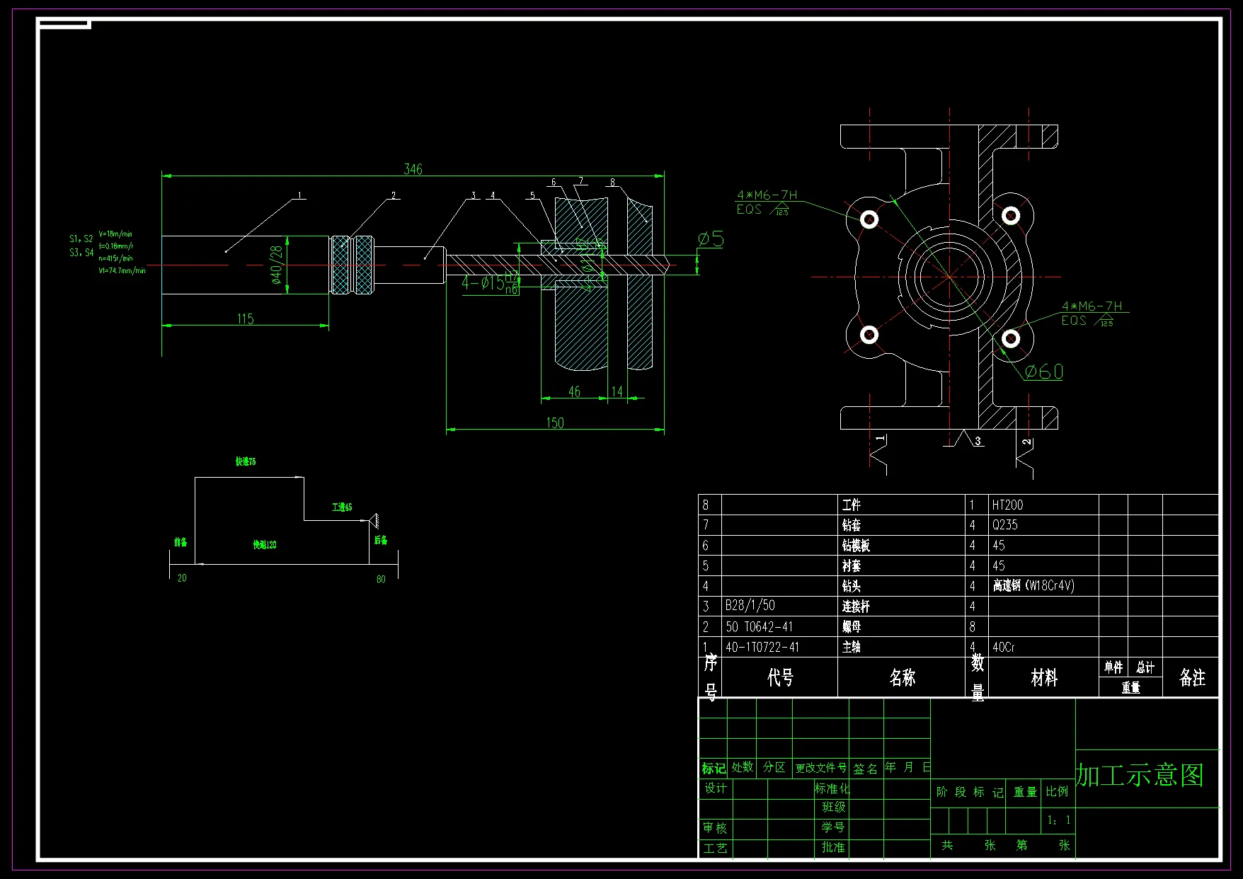 阀体攻4-M6螺纹孔专机及多轴箱设计 根据设计任务书的要求,本设计说明书针对阀体机床的设计及专用夹具设计进行说明。要内容包括组合机床工艺方案的制定、组合机床配置型式的选择、组合机床总体设计以及主轴箱设计。 全文要包括组合机床的总体设计和主轴箱设计两部分。机床总体设计要是在选定工艺方案并确定机床配置形式、结构方案基础上确定“三图一卡”,主轴箱设计根据“三图一卡”,整理编绘出主轴箱原始依据图,重点分析传动系统,经过各种方案的比较,最后确定最优方案。