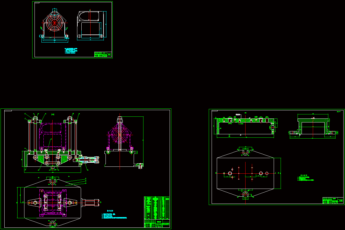在生产过程中,通过一定的手段使生产对象(原材料,毛坯,零件或总成等)的质和量的状态发生直接变化的过程叫工艺过程。小分动箱体机壳体侧面铣削加工工艺装备的设计应该包括确定减速器整体工艺方案的确定,绘制相应的工序图,加工示意图,机床联系尺寸图。被加工零件工序图是根据制定的工艺方案,表示所设计的组合机床上完成的工艺内容,加工部位的尺寸,精度,表面粗糙度及技术要求,加工用的定位基准,夹压部位以及被加工零件的材料,硬度和在本机床加工前加工余量,毛坯的图样,工序图是组合机床设计的具体依据,也是制造,使用,调整和检验机床精度的重要文件。 加工示意图是在工艺方案和机床总体方案初步确定的基础上绘制的。是表达工艺方案具有内容的机床工艺方案图。它是设计刀具,辅具,夹具,多轴箱和液压,电器系统以及选择动力部件,绘制机床总联系尺寸图的主要依据;是对机床总体布局和性能的原始要求;也是调整机床和刀具所必须的重要技术文件。 机床联系尺寸图是以被加工零件工序图和加工示意图为依据,并按初步选定的主要通用部件以及确定的专业部件的总体结构而绘制的。是用来表示机床的配置型式,主要构成及各部件安装位置,相互联系,运动关系和操作方位的总体布局图。用来检验各部件相对位置及尺寸联系能否满足加工要求和通用部件选择是否合适;它为多轴箱,夹具等专用部件设计提供重要依据;它可以看成是机床总体外观简图。由轮廓尺寸,占地面积,操作方法等可以检验是否适应用户现场使用环境。夹具图是对组合机床加工布局的完整描述,夹具图反映了工件加工采用定位的方式,夹具方式等一些重要的参数。工艺方案,工序图,加工示意图,机床联系尺寸图,夹具图,工序卡基本构成了完整的加工工艺装备设计