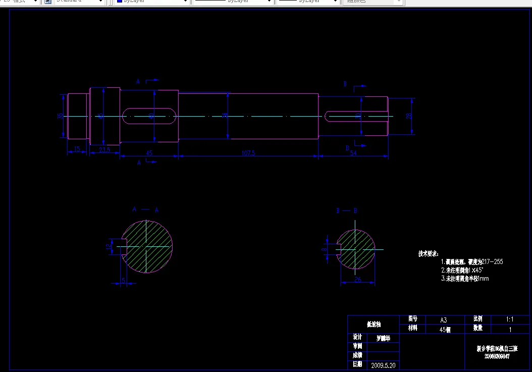 (2) 轴的初步估算和结构设计及轴的危险截面的强度校核(只进行一根轴);