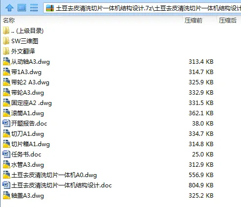 在土豆的生产和加工上,需要有先进的设备来实现完成土豆的去皮清洗的过程,清洗了还需要进行切片处理,这样的设备在我国的发展中是比较常见的,因为土豆在我国家家户户都是一种比较常见的蔬菜,如何在设计上更好的将一体机的结构运用在一个设备上,实现多功能的特点。达到节能减排,提高工作效率,实现本次设计的一个重要的作用。并在设计上克服现有的去皮机的清洗设备在使用上的效率低等问题。在设计上使得去皮机清洗和切片的工作能量在不连续的使用、工作中实现稳定的设计要求,成为当前实现去皮机结构系统的研究的一个重点。在去皮机的强度上和设计的方向上有很多的不确定性,以及去皮的间歇性上会存在的一些不正常工作等特点,给去皮机清洗和切片在使用上和同时实现清洗上带来了一定的难度。因此,现在的科技发展中,对一体机设备的开发和技术的研究上,实现多功能的工作方向,采用去皮机的位置的生产制作等,对于在去皮机设备上提高去皮机的一个工作的效率,使得去皮机设备实现高效的合理利用去皮机的作用,这样的方式在现有的技术发展上具有重要的科学上的研究的价值。