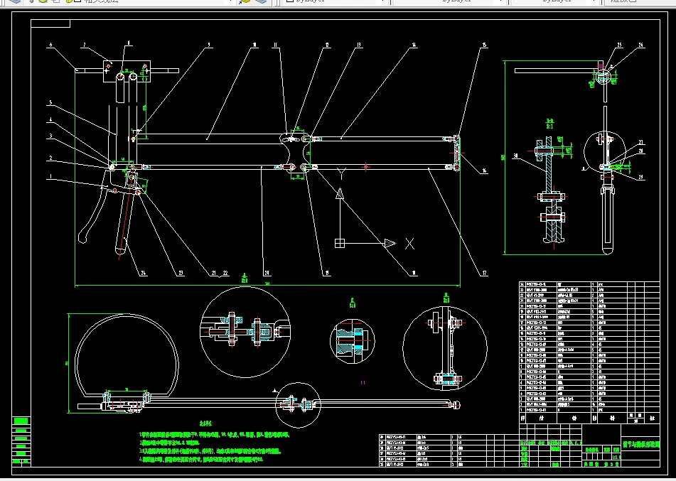 本文介绍了题目的研究背景和意义,论述了苹果采摘设备在国内外的发展 状况,阐述了本次设计研究的内容及方法。本次设计的主要内容是苹果采摘装置的总体方案以及装置的主要组成部分可穿戴装置、夹紧与传动装置、定位与切割装置的结构设计以及三位模型设计。本设计的可穿戴装置由平行四边形机构组成,可模拟人的手臂运动,运用背包式结构将平行四边形机构一端的短杆固定,气弹簧一端固定在上臂杆处,一端固定在腰上,本设计可实现装置的重力都由气弹簧承载,人的手臂不用受力,达到省力的目的。夹紧装置由剪刀机构组成。传动装置采用车闸,手握住闸的手柄,剪刀机构的两根杆相对运动,实现对苹果的夹紧。定位装置将苹果固定,切割刀将苹果柄切断。本设计充分考虑了装置的工艺性、合理性和经济性,设计过程参照了机械设计的基本原理,同时借鉴了其它机械的设计方法。本次设计的装置具有成本低、安装维修方便等特点。