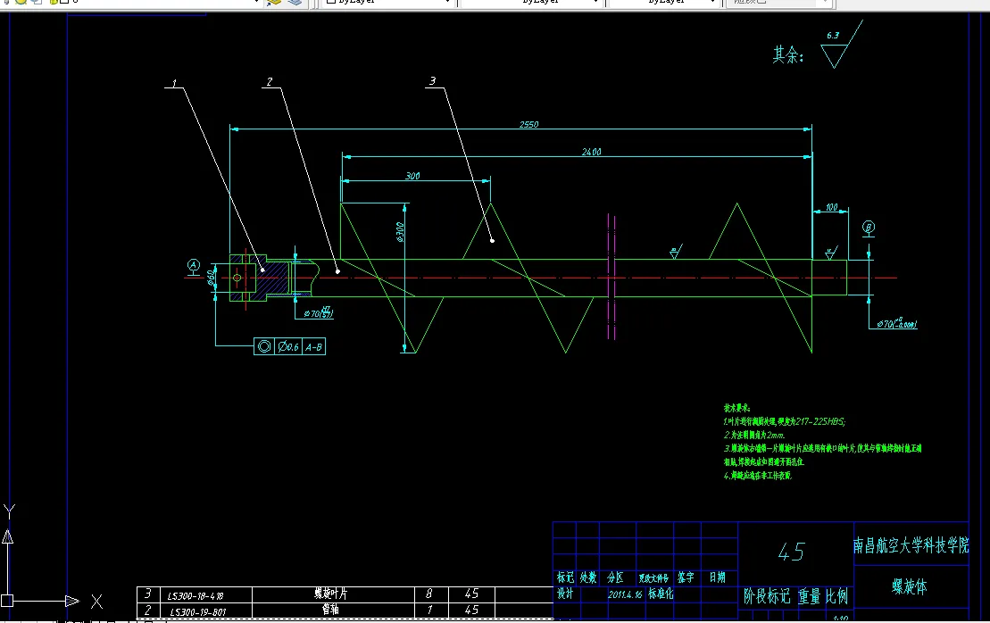 此次设计使用优化思想和方法,通过对给料器完整的设计计算使得输送量和效率得到较合理的匹配,输送性能和传输能力的主要参数分析和使用与改善在生产上的实用合理性。课题对螺旋给料器的设计研究的方法、理论分析结合起来,对整机进行全面的性能、参数的影响深入研究。根据选型要求,设计参数选择的原则和方法鉴定确定该机为LS型螺旋给料器。优化螺旋叶片,结合实际完成的工作目标经过计算后采用右旋弯曲母线螺旋面满面式叶片,确定最合理的填充系数即进料量、螺距大小等。采用变频调速器或调速电机,使螺旋给料器应用中提高劳动生产率、改善质量、提高设备自动化程度等。