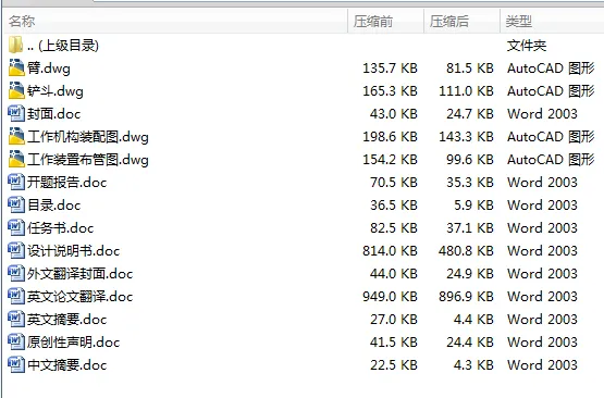 这次设计先介绍了装载机的工作机构利用AUTOCAD2007对装载机的工作机构进行了初步设计,然后对这种轮式装载机工作机构进行了总体设计到零部件设计。主要包括轮式装载机工作机构的关键零部件,如铲斗、连杆机构以及转斗油缸、举升油缸等,并对重要零件进行了刚度、强度分析,以验证设计合理性。