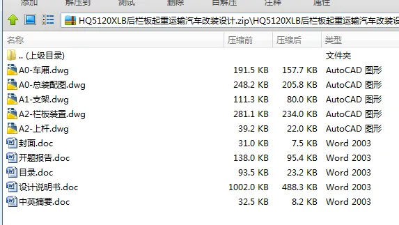 本次设计的题目是后栏板起重运输车的设计。栏板起重运输车采用汽车车厢的栏板或附加起重栏板为起重装置,并利用车身的动力源,驱动栏板进行升降以装卸货物,从而从一定程度上实现了快速货运。