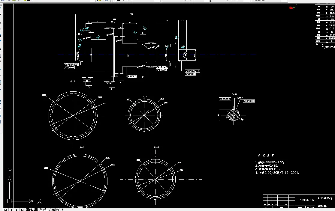 采用中间轴式变速器,该变速器具有两个突出的优点:一是其直接档的传动效率高,磨损及噪声也最小;二是在齿轮中心距较小的情况下仍然可以获得较大的一档传动比。这台变速器具有五个前进档(包括一个超速档五档)和一个倒档,并通过锁环式同步器来实现换档。本设计论述了变速器的总体结构,在设计中完成了各挡齿轮和轴的计算和校核及CAD绘图等工作。