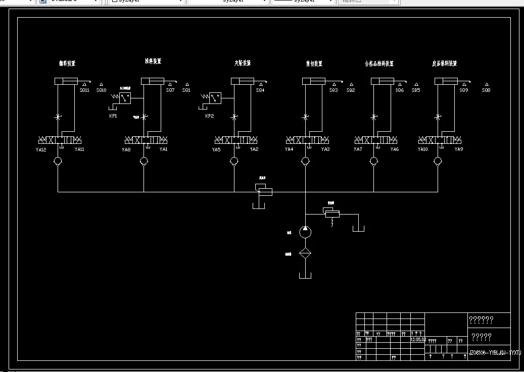 关键词:液压棒料剪切机;液压系统原理图;电气控制原理图及接线图;T形图;PLC接线图