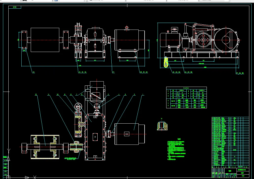本次设计的重点是传动系统的设计。所设计传动系统由电动机、发电机、离合器、制动器、联轴器和传动滚筒六部分组成。考虑到井下空间上的限制,将制动系统与驱动系统设计成一体,共用一个变速机构,以节省空间。同时,根据相关参数对输送机其他部件进行了选型设计,完成了输送机的整机设计。