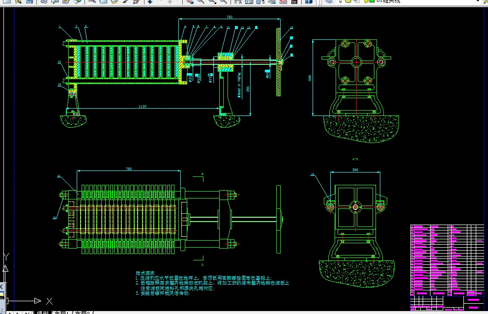 压滤机是利用多孔性过滤介质,拦截混合固体颗粒的液体和固体颗粒,实现固体和液体分离的设备。压滤机广泛应用于化工、石油、制药、轻工、食品、选矿、煤炭和水处理等。目前,现有数百个大型压滤机制造商。为了满足产业发展的需求,市场上已经出现了各种不同的类型压滤机。根据获得过滤的推动力不同,分为重力过滤,真空过滤机和三种类型的压滤机。板框压滤机压紧方式有手动压缩、机械压缩和液压三种形式。正在开发一种新型的过滤设备有:机械力压过滤设备;实现无动态过滤滤饼层;洗煤废水处理、化工和石油等行业大型过滤设备。设计的手工板框过滤机。它的优点是结构简单,容易制造,过滤面积大,占地面积小,操作压力高、能力强的各种材料的应用,主要用于小企业,小批量生产。