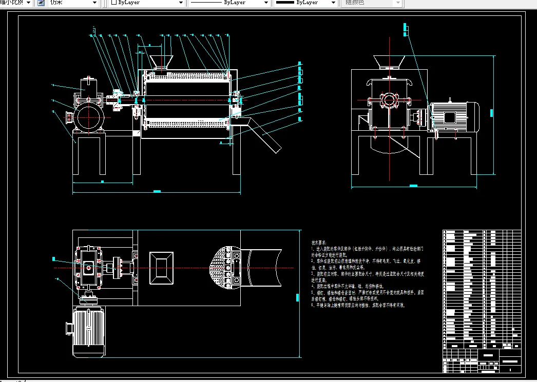 青皮核桃去皮是对核桃初加工的第一步。为了设计适合的青皮核桃去皮机,本文首先通过理论学习与实物研究相结合的办法,对部件加深认识与理解,根据青皮核桃的的力学性能,整体机器的大小及工作效率等综合因素来选择电动机。再根据研究目的与背景来确定合适的方案。机器的执行部分拟采用摩擦与挤压一起作用的方法进行设计,主轴通过减速器降速带动。对于果壳与果皮的分离,同已有的青皮核桃脱皮机进行比较,继而选择分离方法。在设计中对一些设计参数与尺寸将通过参考同类机器的尺寸进行选取设计。对青皮核桃摩擦挤压运动的设计,要对青皮核桃的力学性能进行分析,满足青皮的剪切力但又不超过核桃壳的强度极限。再确定机器各项参数,计算各元件的参数和尺寸,在理论分析的基础上,运用Solidworks建模,设计核桃脱皮机整机结构、关键部件及传动系统。最后完成二维制图。