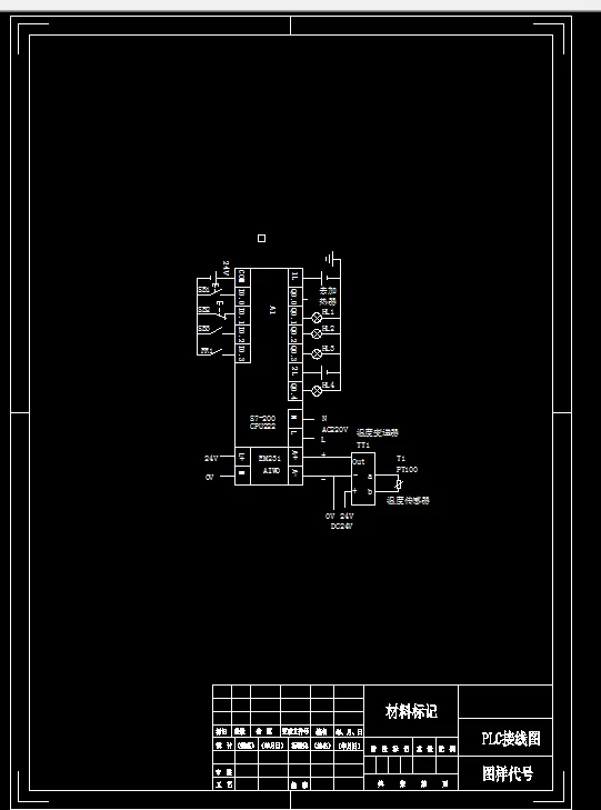 温度传感器加变送器将温度信号转成电信号给PLC的模拟量输入模块,得到0到32000的数字量信号,经PLC处理得到实际温度,跟设定的温度进行比较,经PLC内部的PID运算,输出脉冲信号,经固态继电器(调功器),控制加热器,控制温度稳定。