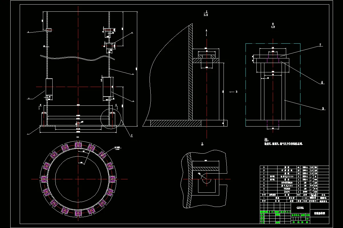 最后编写填料塔的制造加工工艺、安装过程中需要注意的安全问题及防腐措施。根据设计要求选择合理的结构形式,自行绘制满足设计结构要求的工程图纸。图纸的技术要求需要明确的在图纸上标示出来。