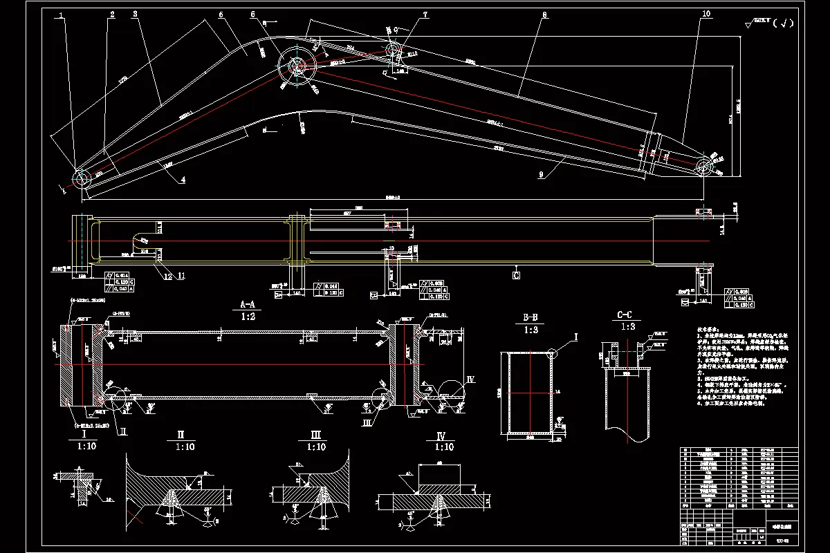 本设计是一种小型挖掘机的前部工作装置,可在特殊条件下进行工用和民用作业。可用于矿井下小空间清理、装载和运输,还可用于冶金、采矿、隧道施工等场合。本设计中通过对现有技术理解和运用,利用任务书中所给的铲斗额定装载载荷计算铲斗的斗容,选定标准铲斗。由选定的标准铲斗来进行挖掘机的最大铲取阻力、最大装载高度、最小卸载距离以及设计所需的其他量的计算。对动臂和铲斗的结构尺寸进行了详细的设计计算和校核。并且粗略地进行了动臂、斗杆及铲斗油缸和这些油缸所对应的活塞杆内径的选择。在一定程度上对工程师责任及社会持续健康发展进行了探讨。