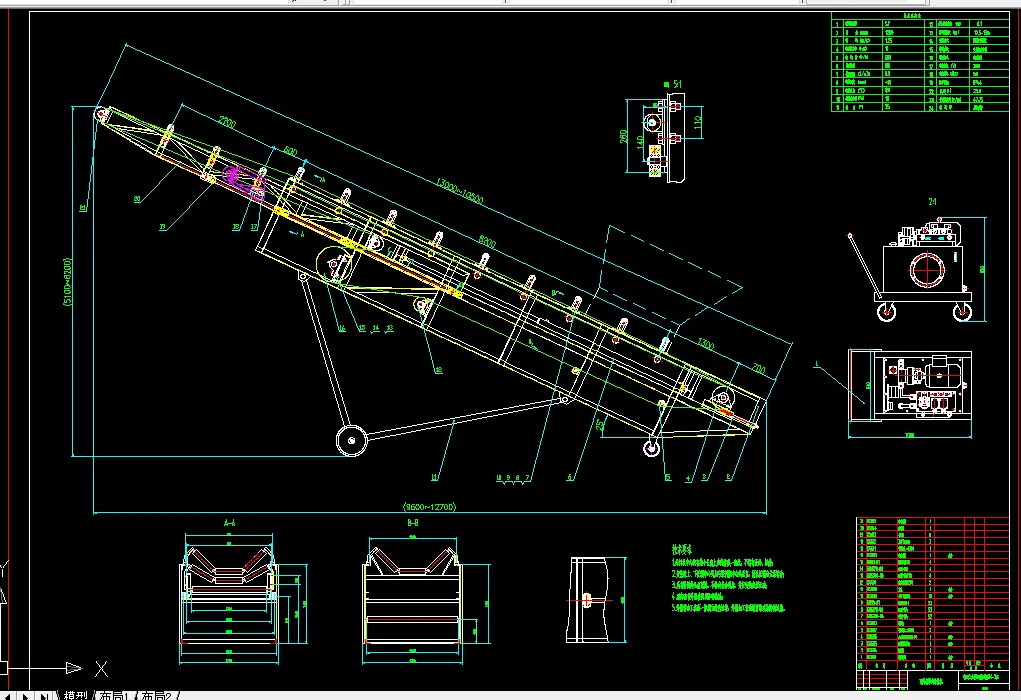 摘要:本次设计是关于矿用固定式带式输送机的设计。首先对胶带输送机作了简单的概述;接着分析了带式输送机的选型原则及计算方法;然后根据这些设计准则与计算选型方法按照给定参数要求进行选型设计;接着对所选择的输送机各主要零部件进行了校核。普通型带式输送机由六个主要部件组成:传动装置,机尾和导回装置,中部机架,拉紧装置以及胶带。最后简单的说明了输送机的安装与维护。目前,胶带输送机正朝着长距离,高速度,低摩擦的方向发展,近年来出现的气垫式胶带输送机就是其中的一个。在胶带输送机的设计、制造以及应用方面,目前我国与国外先进水平相比仍有较大差距,国内在设计制造带式输送机过程中存在着很多不足,本次带式输送机设计的一般过程,对今后的选型设计工作有一定的参考价值。同时增加了查阅相关资料的能力,对于以后的深入学习有很大的价值。