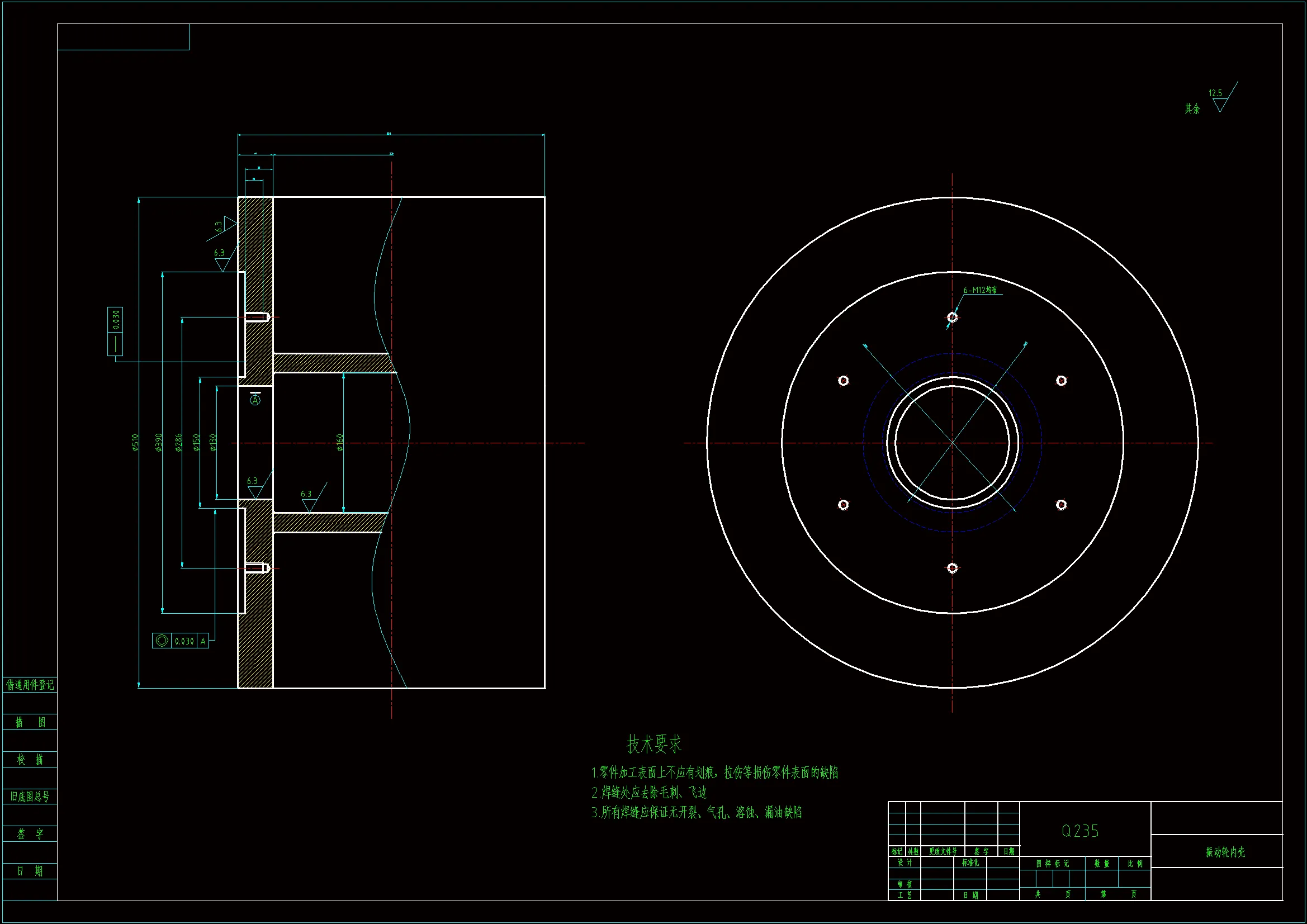 由于所选择的YZ07振动压路机为轻型振动压路机,所承受的激振力较小,因此振动轮设计为单振幅、单振频的振动形式,设计较为简单和常用。具有很强的通用性,通过对YZ07振动压路机振动轮中的偏心轴以及所选轴承、激振器的设计计算,确定整个振动轮旋转过程中所产生激振力以及校核部分零件,使之满足YZ07振动压路机的工作需求。