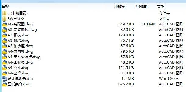 2、若题目上备注三维,则表示文件里包含三维源文件,由于三维组成零件数量较多,为保证预览截图的简洁性,本站将三维文件夹进行了打包。三维及CAD预览截图,均为本站电脑打开软件进行截图的,保证能够打开,下载原件超高清,下载后解压即可;
