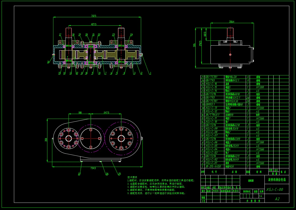 包含二维CAD(齿轮箱装配图,箱体零件图,齿轮零件图,轴零件图,机构运动简图),包含三维SW2020全部零部件以及装配。基本参数:配套动力:50马力(36.8kw,1kw=1.36马力进行换算),拖拉机输出转速:540r/min ,旋耕机幅宽:2.5m,传动系统输入功率:50KW,传动系统输入转速:540r/min,传动系统输出转速:270r/min(180r/min-300r/min)。
