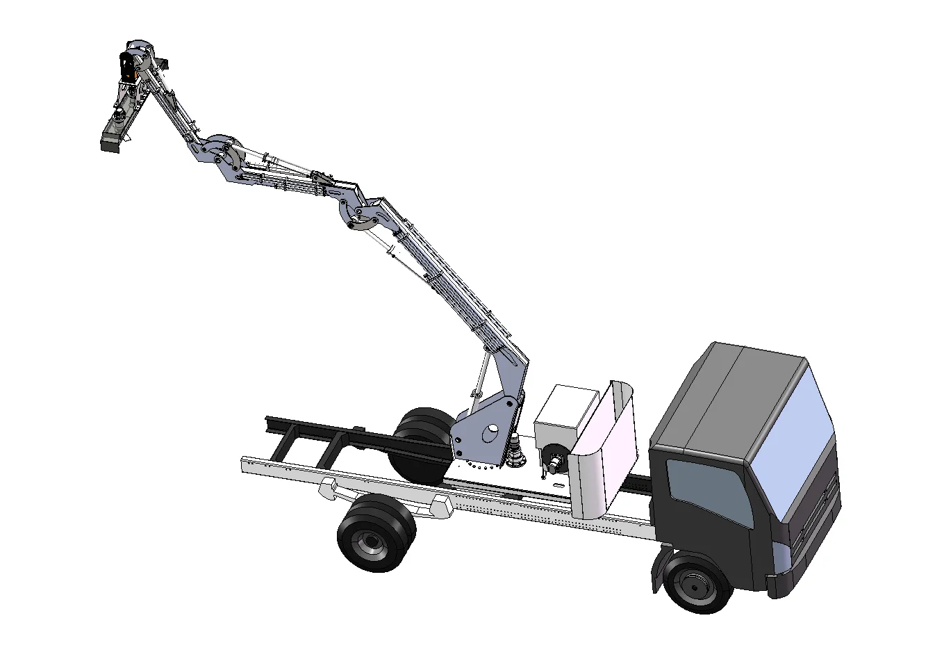 本课题设计的自动果树修剪机设计方案,通过利用互联网、图书馆查阅相关资料,充分了解国内外高枝修剪机的发展现状,分析明确了自动果树修剪机的未来发展趋势,真实去到相应生产企业,实地观看和了解普通自动果树修剪机的生产过程和情况。最终通过Solidworks三维建模软件,建立三维模型;利用CAD二维软件,绘制总成图和部分零件图。该设计方案的结构是由底座主传动系统,车载机架,动臂机构,切割机构四大部分组成。底座旋转系统安装在汽车底盘上,发动机总成,底盘驱动装置,和支撑底板骨架结构是通过回转驱动来实现的。这种设备可用于修剪高枝树篱、灌木、树枝等。