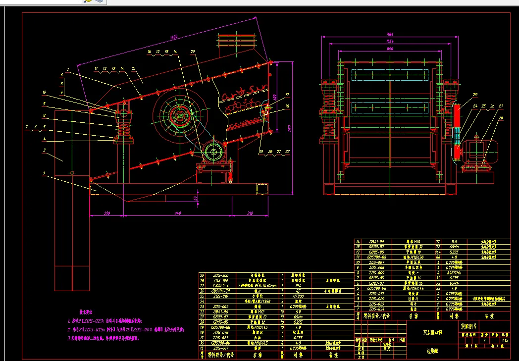 本产品为生产能力为85.5t/h的中型油茶果清选筛,对于筛框的材料有比较高的要求,现采用高强度和高冲击韧性的钢材,不仅仅提高了筛框的耐用度,还减轻了整个结构的重量,对弹簧的选则等许多方面也带来了很多的方便。