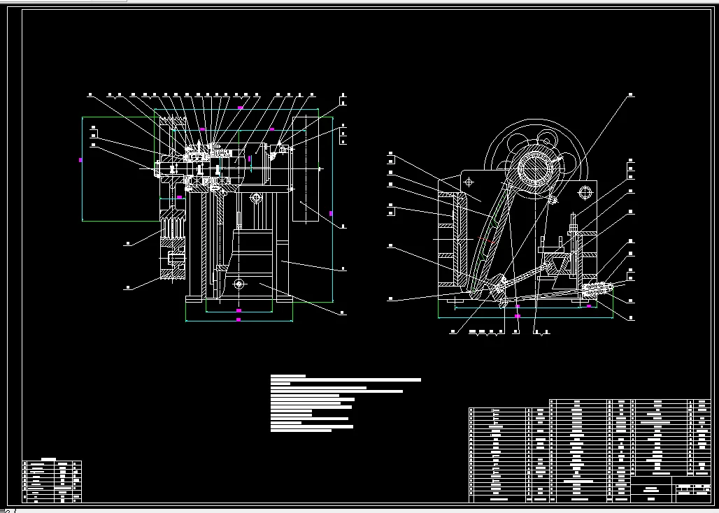 本文介绍了颚式破碎机的概念、特点及分类,总结了颚式破碎机的发展现状与趋势;阐述了其结构与工作原理。重点对颚式破碎机主要结构部件进行了设计与计算,包括偏心轴、颚板、推力板、飞轮、齿板结构部件等;另外对主要零部件偏心轴、轴承进行了设计计算与校核。本文还简单介绍了颚式破碎机的安装、操作与维护。