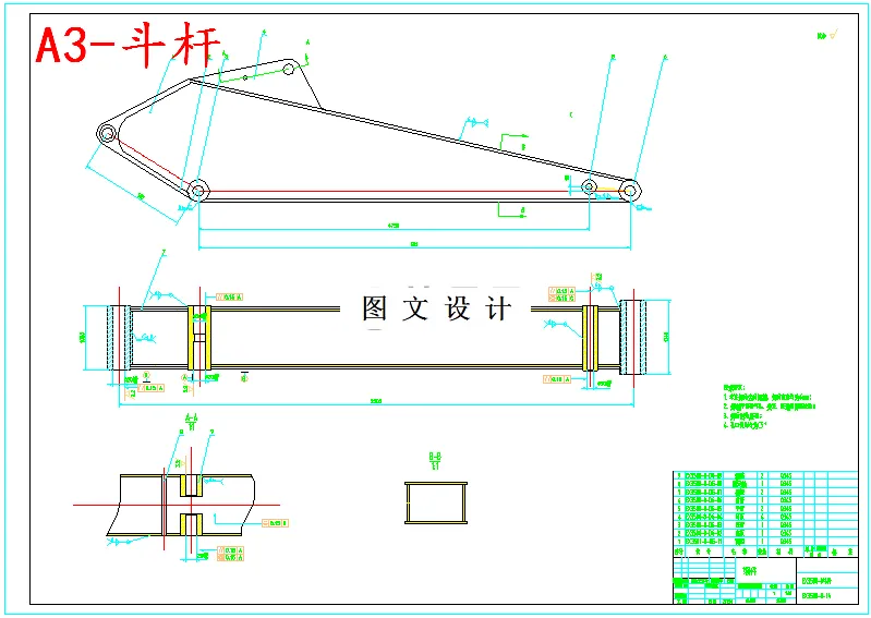 采用的设计方法主要是参照相关机型进行测绘、比拟反复验算确定尺寸。 在设计中应注意工作装置设计原则,最大卸载高度不低于13.3米,最大挖掘高度19.78米,在各部件满足要求的条件下实现9.34米最大挖掘深度,19.4米最大挖掘半径,铲斗最大挖掘力932KN,斗杆最大挖掘力912KN,实现挖掘的功能。