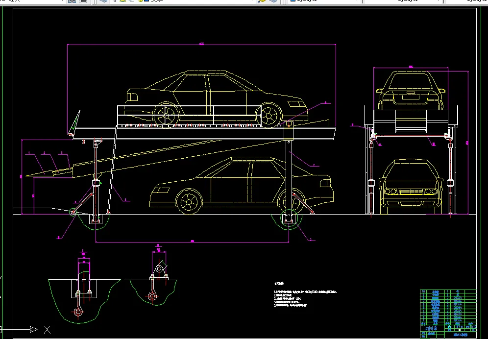 在此设计中,通过利用杠杆和链传动曳引活动梁实现对汽车的二层存取。