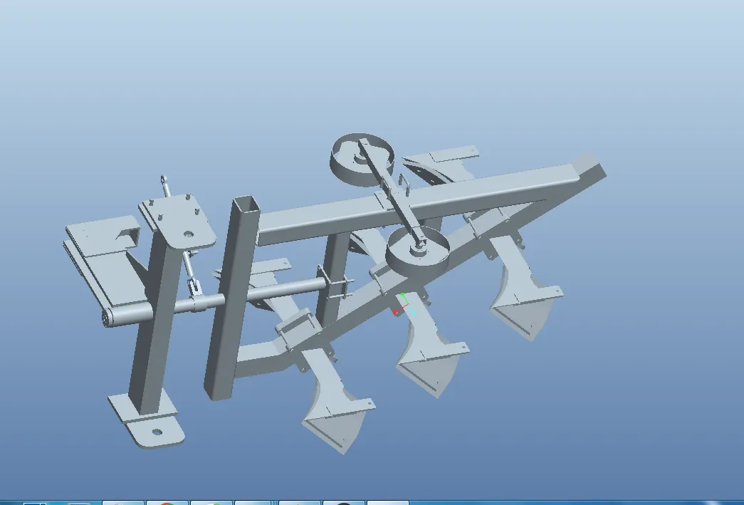 犁耕作业是农业生产中必不可少的生产过程,铧式犁也是世界农业生产中历史悠久、应用最广泛的耕地机械。翻转犁是一种常用的农业机械,具有重要的研究意义。本文以悬挂结构的翻转类型的耕犁机器设备做了如下工作:第一章的主要分析悬挂结构的翻转类型的耕犁机器设备所处的环境,即提出了本文研究的课题所处的基本背景以悬挂结构的翻转类型的耕犁机器设备在国内以及国外的基本现状,了解我们国家和国外的基本差距;分析了我们针对本文的基本研究意义,包括对研究学术的理论意义以及对悬挂结构的翻转类型的耕犁机器设备市场应用的现实意义,并分析了悬挂结构的翻转类型的耕犁机器设备的基本分类。第二章节的主要任务是对悬挂结构的翻转类型的耕犁机器设备的基本结构布局做了设计。分析了悬挂结构的翻转类型的耕犁机器设备的基本作业的参数特点,对悬挂结构的翻转类型的耕犁机器设备的基本作业原理以及作业历程进行了分析列述,对悬挂结构的翻转类型的耕犁机器设备的翻转作业机构以及悬挂作业机构进行了原理综述分析,对其中的各种调整作业进行了分析叙述。第三章的主要任务是对主要的零件结构进行了设计分析。这就包括主要的技术参数进行了设计求解,分析了悬挂结构的翻转类型的耕犁机器设备在作业的时候的基本阻力载荷大小,并 对其进行求解;对翻转结构的基本作业原理进行了分析列述,对液压缸的基本作业原理进行了设计,分析了悬挂结构的翻转类型的耕犁机器设备的安全保护装置即安全螺栓,分析安全螺栓的作业基本强度以及抗剪切的能力,对轴结构和销轴结构进行了设计分析,并分析了其基本强度。第四章节主要对本文研究的建模软件PROE进行了简单的介绍,阐述了此软件的基本建模方法,即自顶面向下面进行设计的方法和自底面向上面进行设计的方法。此外介绍了整个悬挂结构的翻转类型的耕犁机器设备的各个模型的功能以及其最种建好后的基本模型,包含了犁架结构部件、限深轮结构部件、犁铧结构部件、悬挂结构部件以及总装配等等。第五章的主要任务是对悬挂结构的翻转类型的耕犁机器设备的日常中的需要维护事项进行了列述和分析,对其中比较常见的基本故障情况进行了统计分析,并分析了故障出现的原因,提出了解决故障的基本方法。