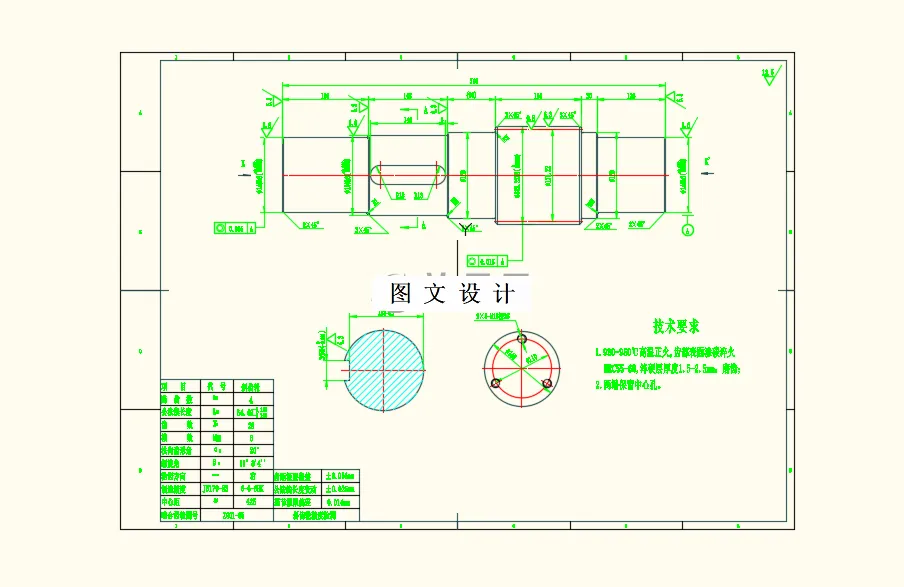 Φ260/Φ750×800镁合金温轧机组的构成庞杂,本人这次负责设计减速机课题,该机组属于温轧机组,与传统的冷轧(常温状态)工艺相比,不同牌号的镁带坯温轧预热温度300-400℃。机组开坯轧制速度120米/分,开卷张力5-50kN开卷机的速比必须满足机组运动参数和动力参数的需要。选型合适的传动电机并进行工况分析。设计计算齿轮传动副参数,校核减速机传动轴强度、校核齿轮传动副接触应力和弯曲应力强度。协调关联尺寸:开卷机减速机输出轴与开卷卷筒轴连为一体;开卷机减速机+齿轮联轴器+传动电动机刚性联接在同一滑动底座上,正常工作时滑动底座在对中油缸的驱动下可横向平移,实现边部对中。设计要兼顾机组整体尺寸链的统一性、合理性。