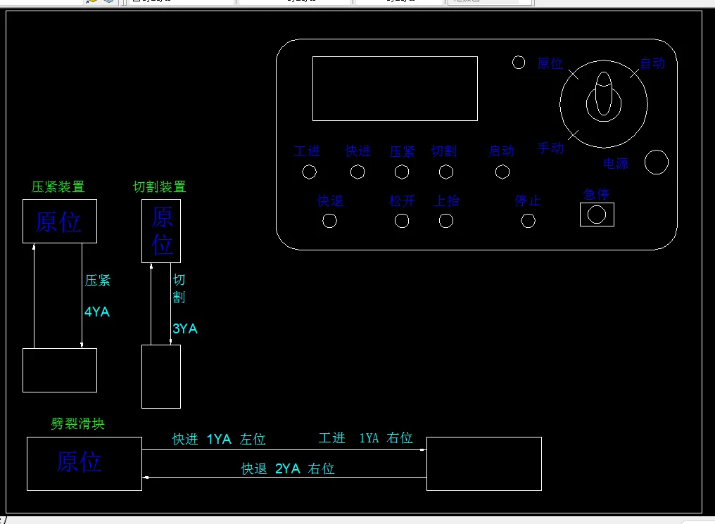 随着科技的发展,已经出现了劈柴机,可以代替手工劈柴,节省大量劳动时间和劳动强度。现有技术的劈柴机可用于制造木柴通常包括一个进料装置、一个横切装置和一个液压驱动的劈裂装置,其中一个固定长度的横切原木从树干上被劈开,通过液压缸的移动端将其推到格子劈裂刀片上。通常情况下,送料装置为传送带,横切装置为圆锯或链锯。但是现有技术中的劈柴机仍然需要人利用液压装置进行半自动化的劈柴操作,虽然提高了劈柴效率,但是人工扶着木材在加工区域进行切割非常危险。本次设计的劈柴机工作系统, 是在基础的劈柴机工作系统上增加电液控制,可以大幅减少人工喂料的次数以及受伤的风险,实现工作系统更高的自动化。本次将通过对劈柴机工作系统的学习和研究,设计出一种新的工作系统。根据工作系统的原理图画出相应的液压系统图,并根据其运动方式实现