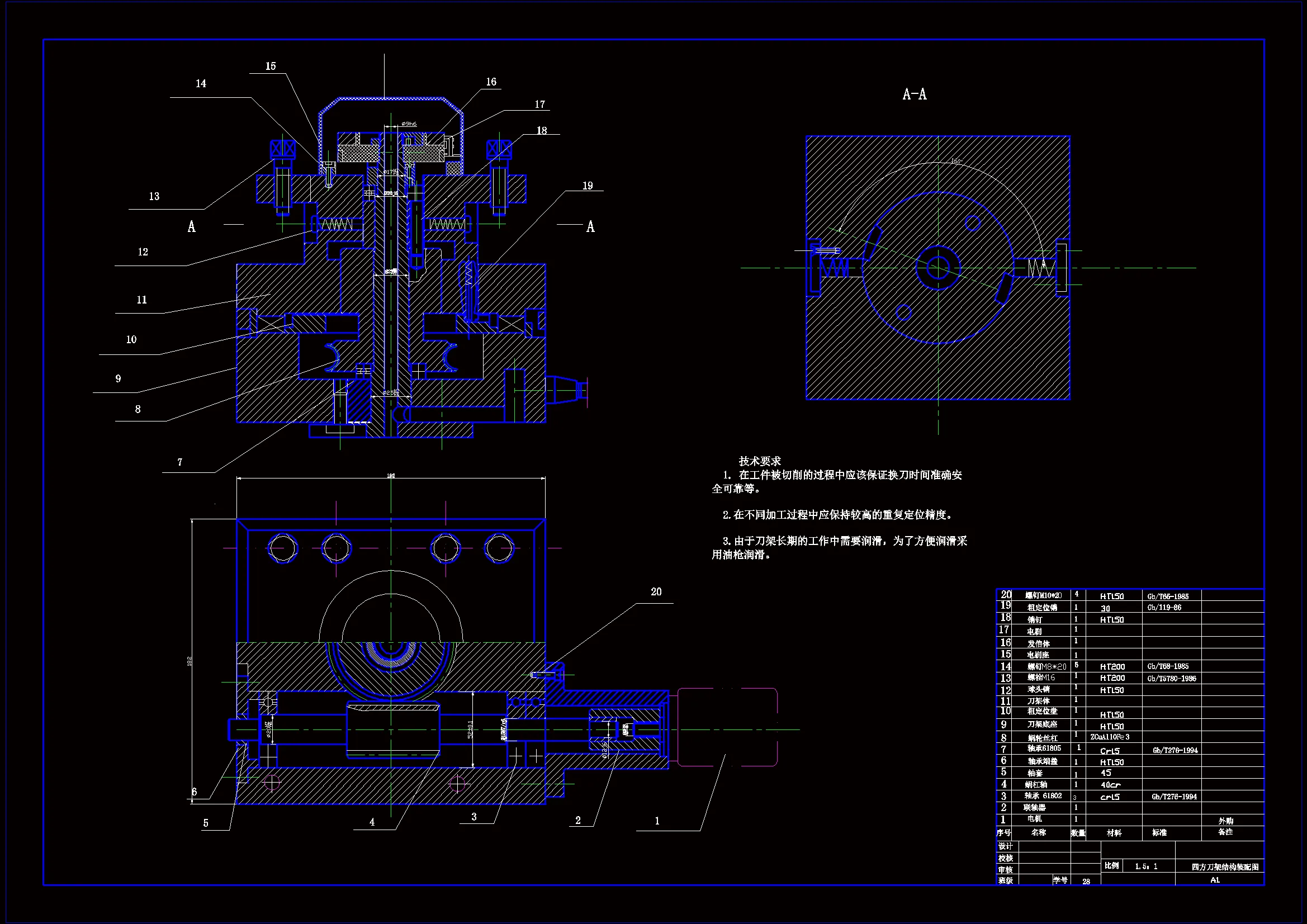 本文主要阐述了将CA6140普通车床改成经济型数控车床,通过总体方案的设计,考虑机床的类型、传动方式和执行机构的选择等;针对车床的进给机构,计算出负载转矩和转动惯量,并根据计算结果分析各结构特点,确定横向传动链的方案,采用步进电机经减速机构和滚珠丝杠相连接机构,噪声低、可靠性高。由于它属于经济型数控机床,在保证一定加工精度前提下,应该简化机构、降低成本,因此,进给伺服系统采用步进电机开环控制系统。计算选择步进电机、齿轮副联轴器、滚珠丝杠螺母副等。其中步进电机的选择包括确定系统的脉冲当量和步距角的选择以及根据距频特性来校核点击能否满足要求;通过对最大工作载荷和最大动载荷的计算初步确定滚珠丝杠螺母副的型号,再校核它是否稳定合格。根据选型的数据绘制出滚珠丝杠螺母副图以及装配图。