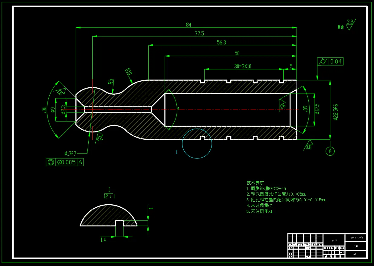 XB01VSO-125斜盘式轴向变量柱塞泵,包含二维CAD图纸总装配图,柱塞,配流盘,设计计算书。 基本参数: 额定压力:35MPa 额定转速:n=1800r/min 额定排量:125mL/r 最大扭矩:696N.m 类型:XB01VSO-125系列斜盘式变量轴向柱塞泵
