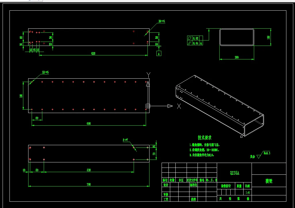 在当今的大型制造业中,为了提高生产效率,保证产品质量,工业装置的技术水平和应用水平在一定程度上反映了一个国家的工业自动化水平,工业装置满足行业内的重型及轻量型多种搭建配置组合使用,是现代自动控制领域的尖端技术,是机械、机械、电、液压化技术、自动控制技术、传感器技术、单芯片微机技术和计算机技术,它已经成为现代机械制造生产系统的重要组成部分,其优势在于通过编程可以完成各种期望任务。 通过了解皮革切割机的应用情况,对皮革切割机的设计提出了具体的要求,根据三维线性运动原则制定了皮革切割机各部分的设计原则,拟定系统方案:主体的详细机械结构,即龙门传动X、Y、Z方向的具体机械结构,包括传动结构、支撑结构,驱动结构及相关必要附件,实现末端刀具组件的运动方式。对现有的机械结构提出了新的改善,将目前的新技术应用到本课题中,使皮革切割装置更适合现在的工业作业环境。 本文设计了皮革切割机的机械部分,主要包括龙门结构、传动系统等方面,通过对皮革切割机的龙门式移动机构的设计,选用电动机、传动装置的设计,并通过三维软件Solidworks完成三维模型建立,然后对关键零部件的校核,在参数优化的基础上对其绘制二维Auto CAD图纸,本文对于皮革切割机的设计具有一定的参考价值。