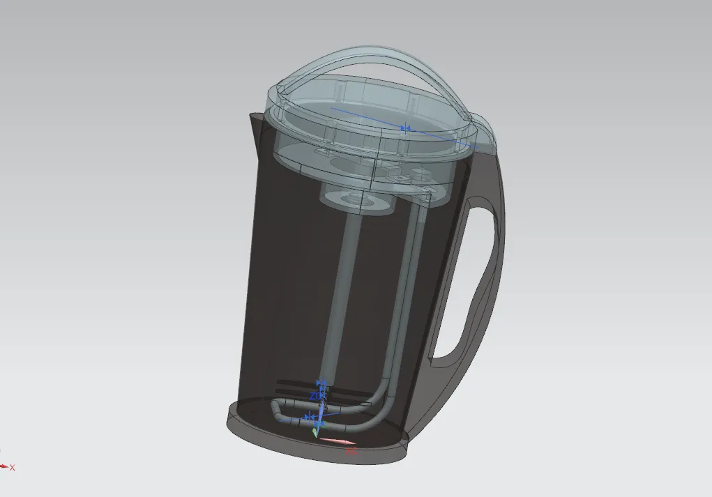 本文针对V1200豆浆机的设计主要讨论了如下内容:首先讨论课题的来源及意义,重点研究国内外豆浆机的现状。其次对豆浆机总体方案进行设计,使得结构紧凑完整且相对于之前产品具有优化的项目。再次对豆浆机设计相关数据进行计算,保证各零件满足产品生产过程中的各种要求。最后通过UG三维建模软件完成豆浆机结构设计,并绘制出CAD工程图纸,根据模型最终进行3D打印。