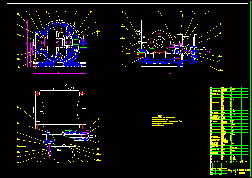 铣床万能分度头设计 铣床系指主要用铣刀在工件上加工各种表面的机床。通常铣刀旋转运动为主运动,工件和铣刀的移动为进给运动。它可以加工平面、沟槽,也可以加工各种曲面、齿轮等。铣床是用铣刀对工件进行铣削加工的机床。铣床除能铣削平面、沟槽、轮齿、螺纹和花键轴外,还能加工比较复杂的型面,效率较刨床高,在机械制造和修理部门得到广泛应用。而分度头是铣床的主要附件之一,本次设计主要是铣床万能分度头结构设计。对分度头进行结构设计,并用AutoCAD2004软件大致画出了上述设计的装配图及一些零件图,力求更清晰直观的表达设计。