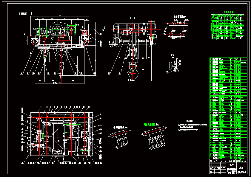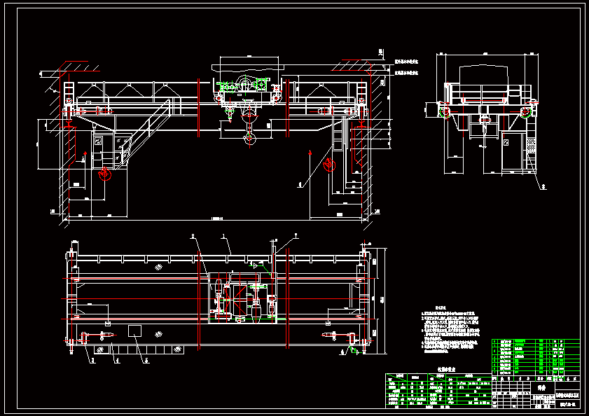 50t-10t桥式起重机设计 起重量:主起升50吨,副起升10吨;起升速度:主起升7.8m/min,副起升13.2m/min;起升高度:主起升12m,副起升16m;运行速度:小车38.5m/min,大车74.5m/min;跨度16.5m;工作级别M5.