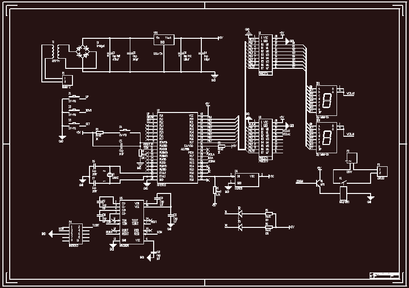 基于单片机的水温自动控制设计本课题提出一种基于单片机并采用数字化单总线技术的温度测控系统应于实验室水箱温度控制的的设计方案,该方案是利用温度传感器将实验室水箱温度的变化,变换成电流的变化,再转换为电压变化输入模数转换器,其值由单片机处理,最后由单片机去控制数字显示器,显示实验室水箱的实际温度。一旦该温度值超过我们预先设定的上、下限,单片机便启动报警系统进行报警,进而对实验室水箱温度进行控制。这种设计方案能对多点的温度进行实时巡检,各检测单元能独立完成各自功能,同时能够根据主控机的指令对温度进行定时采集,测量结果不仅能在本地显示,而且以利用单片机串行口,通过RS-232总线及通信协议将采集的数据传送到计算机,进行进一步的存档、处理。主控机负责控制指令的发送,控制各个从机进行温度采集,收集测量数据,并对测量结果(包括历史数据)进行整理、显示和存储。该测控系统不需要任何固定网络的支持,安装简单方便,系统稳定可靠,可维护性好。