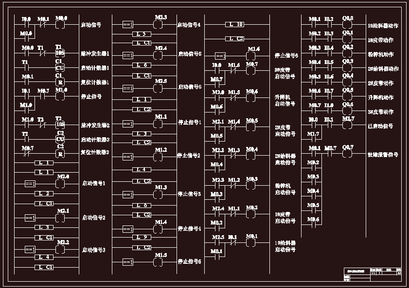 电厂燃料输送带的PLC控制设计 供料系统是用于生产原材料输送处理的流水线设备,主要是用于煤粉、矿石等生产材料的加工和供料。 供料系统一般是由给料器、传送带、粉碎机、升降机等单件设备组合来完成特定工艺过程。这类系统的控制需要动作稳定,具备连续可靠工作的能力,同时考虑到原材料处理过程中设备经常需要启停进行处理的情况较多,所以对于设备的控制也有一些特殊的要求。 目前,供料控制系统在工业领域有着广泛的应用,例如,火电厂的燃料煤是通过煤厂的输送带送进锅炉的,因此,需要对输送带实现自动控制。此外,供料控制系统也广泛运用井下采矿和食品业等。对于供料控制系统实现自动控制以及其运行的可靠性与稳定性直接影响着生产发展。采用传统的接触继电器控制系统,不仅接线复杂,抗干扰能力差,易因接触不良而造成故障,而且功能扩展性差。PLC系统因其可靠性高,编程简单、功能完善而越来越来受到青睐,传统的接触继电器控制系统已经逐步被PLC系统所取代,。本文介绍了基于PLC的供料控制系统,该系统采用可编程控制器来完成对供料系统的控制,可以满足实际工艺要求的各类控制条件,同时对于一些复杂的控制需求也可以通过可编程控制器的指令顺利实现。