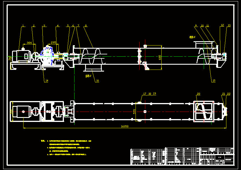 卷龙输料系统设计【螺旋输送机】卷龙输料机的设计。它原理是:当马达启动后,驱动螺旋轴回转,此时加入到槽内的物料由于螺旋叶面转动,使受着螺旋的轴向推力的作用,使得物料向着前进方向推进到卸料口处,物料被传送出去,从而达到输送物料的目的。在本篇设计中输料机传动装置采用的是NGW型行星齿轮减速器传动,NGW型行星齿轮减速器特点:质量较小、体积较小、承载能力较大、传动比较大,和效率比较高以及传动平稳等优点。