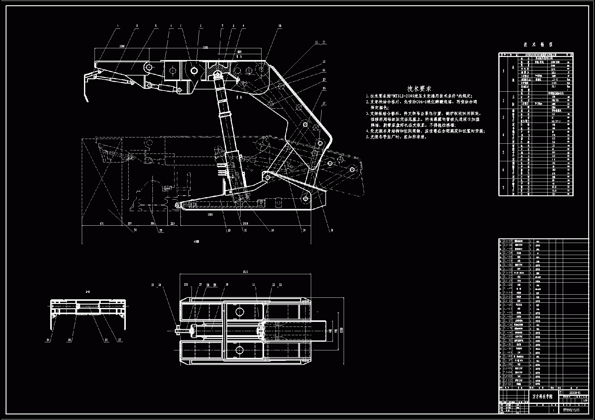 液压支架的运动仿真设计(包含8张CAD图纸和三维模型) 通过对液压支架进行运动仿真证明,设计支架尺寸合理,运动灵活,无运动干涉区域,顶梁前端一点的运动轨迹符合近似双纽线的要求。液压支架在工作过程中,不仅要可靠的支撑顶板,维护一定的安全工作空间,而且要随工作面的推进,进行移架和推移输送机。因此,支架要实现升、降、推、移四个基本动作,这些动作是利用泵站供给的高压液体,通过工作面性质不同的几个液压缸来完成的。