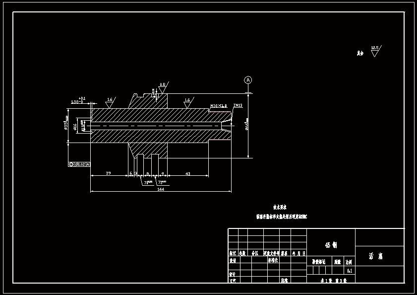 数控机床45#刀柄拉刀机构设计 45#刀柄拉刀机构是数控机床主轴内部用于刀具自动夹紧的机构。在加工之前,刀具由换刀机械手自动装入主轴孔后,其刀柄后部的拉钉便被送到主轴内拉杆的前端。当液压系统接到夹紧信号时,其电磁换向阀左位得电,液压油通向液压缸的左端,活塞在液压油的作用下向右移动。同时,拉杆在碟形弹簧的作用下也向右移动,其前端径向的钢球在主轴内壁的逼迫下沿直径方向收缩。钢球将刀柄拉钉紧紧扣住,在拉杆作用下带动拉钉向右移动。当活塞移动到位时,其活塞杆上的接近开关发出信号,使得液压系统中的电磁换向阀失电回到中位。这时拉杆便保持在拉刀位置上,刀具便被装夹好,此后便可以进行工件的加工了。