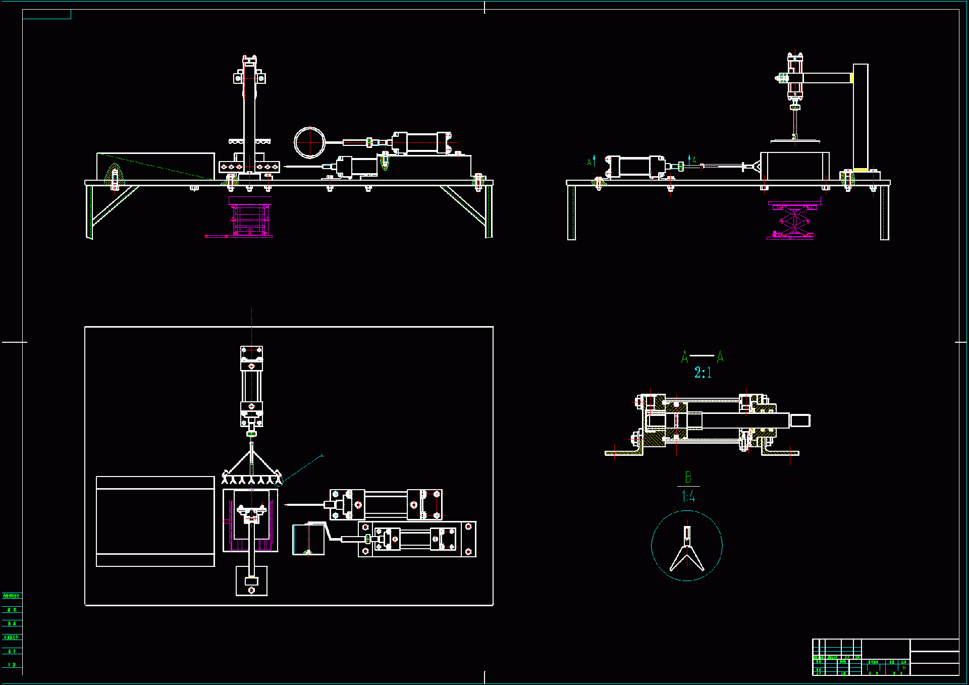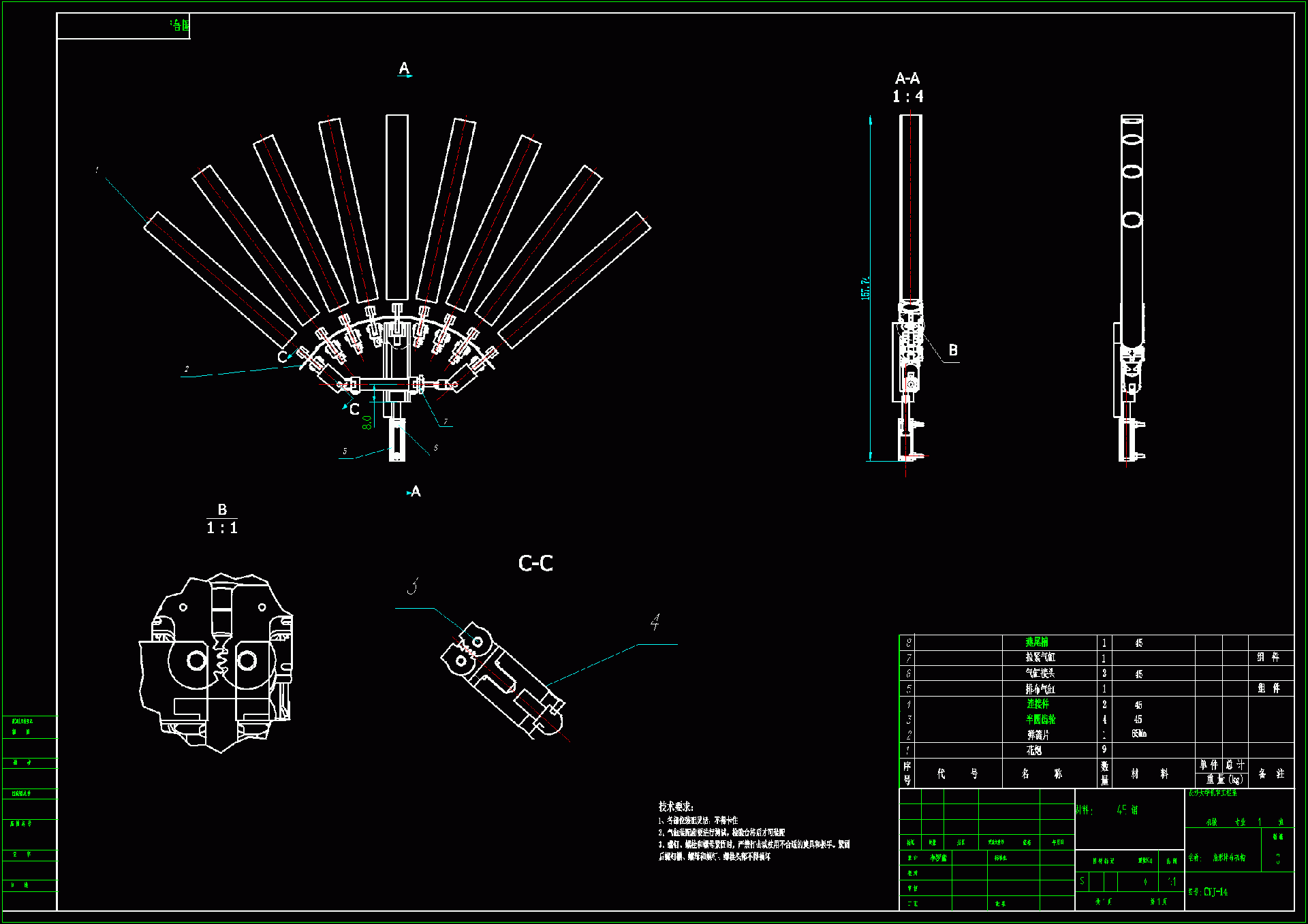 花炮筒扇形排布穿引机设计 烟花鞭炮的传统生产工艺大多系手工操作,工艺烦琐。不仅劳动强度大、功效低、产品质量难以保证,研发花炮筒扇形排布穿引机,是提高生产效率,确保安全生产和稳定产品质量的必然趋势。 花炮筒扇形排布穿引机可实现花炮筒的扇形排布、涂胶、穿引等工序,其主要由四部分组成:扇形排布机构、打孔穿引机构、涂胶机构、堆砌机构。扇形排布机构部分是实现花跑筒固定并且呈扇形排布的机构,主要通过弹性元件变形实现均匀扇形;打孔穿引机构是通过气缸实现在花炮筒底端打孔,同时将引线勾入炮筒的机构;涂胶机构是采用胶箱、涂胶滚筒实现在花炮筒筒体涂胶的机构;堆砌机构是将已排的扇形花炮筒堆砌,形成扇形筒堆。为传统烟花鞭炮生产提供了一种可用的自动扇形排布穿引机。