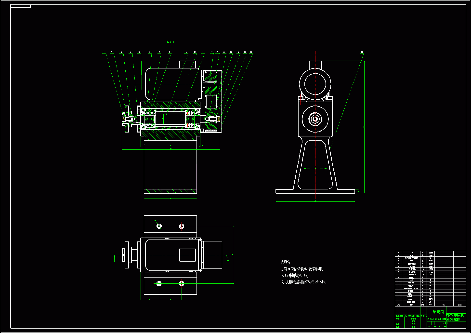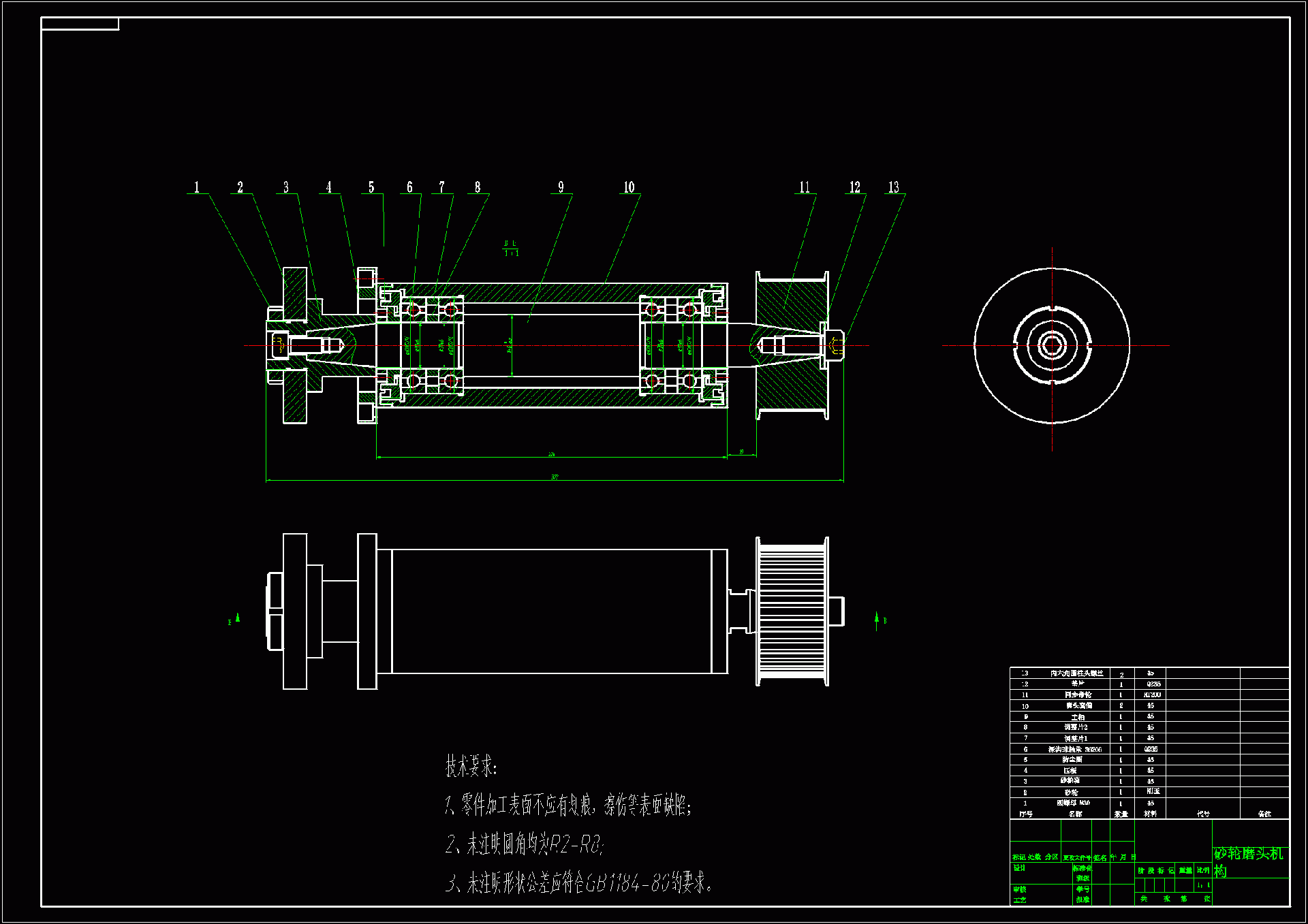 首先针对特殊磨头进行总体方案设计,进而确定特殊磨头的总体布局,随后,对主轴组件进行设计。介绍了主轴的工作原理及关键技术。然后,确定了合理的主轴总体结构,分别对主轴的各零部件作了设计,产生了装配图、零件图与设计说明书等设计文档。最后,对主轴的旋转轴和轴承进行了详细的分析和校核,计算表明,该主轴设计符合要求。 最后选取了一种典型的零件带轮作为研究对象,介绍车削工艺的设计方法和相关的工艺选择原则;并分别对带轮零件分析它的工艺设计、加工过程及加工工艺难点,解决了这几类零件的主要工艺要点问题并给出具体的零件加工工序,为其它同类零件的加工提供依据。